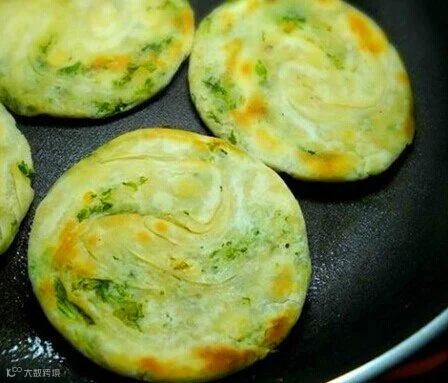 10)压实擀开,放煎锅中,烙至两面金黄即可