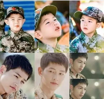 其实说起来,安吉跟宋仲基确实有些相似,上一期萌娃和爸爸们穿上迷彩服进入军营体验生活,马上就有网友制作了安吉和宋仲基的对比图,一看,还真有几分相似呢。