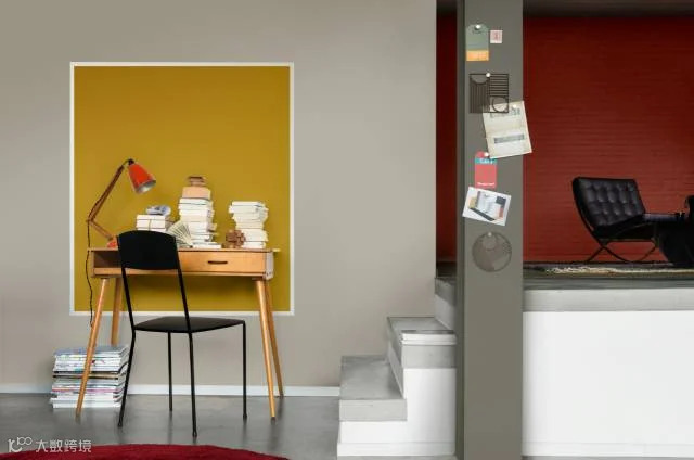 觉得自家的书房、办公空间过于沉闷死板?不妨通过在墙面上巧妙地运用色彩,为自己打造一个起居工作两相宜的空间环境。这一主题通过对水洗蓝及其对比色系的合理运用,重新定义适意自在的办公空间。