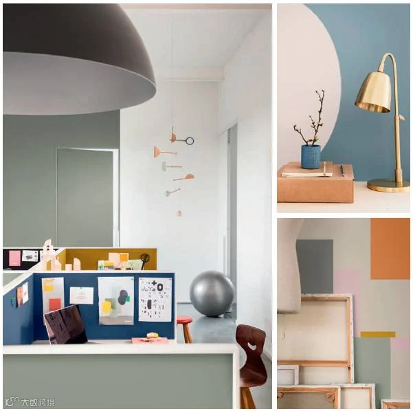如先以水洗蓝作为底色,营造专注的氛围,再将温暖的亮色系附着其上,打造一个充满活力,积极向上的氛围,唤起你工作的热情。