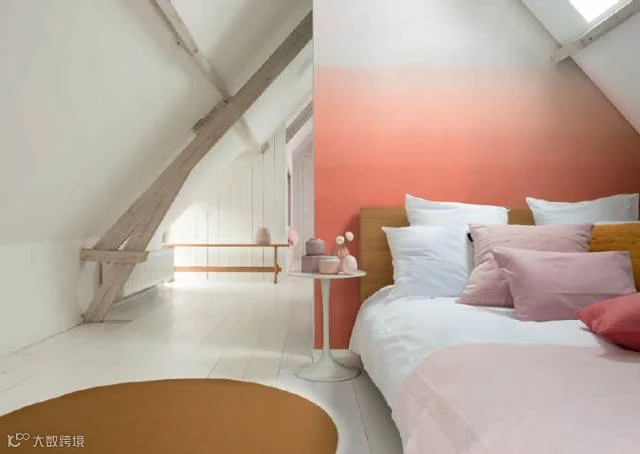 或选择同色系的暖色涂刷主体墙面,比如浅红色至深红色,将其混合,营造一种美妙的渐变效果。