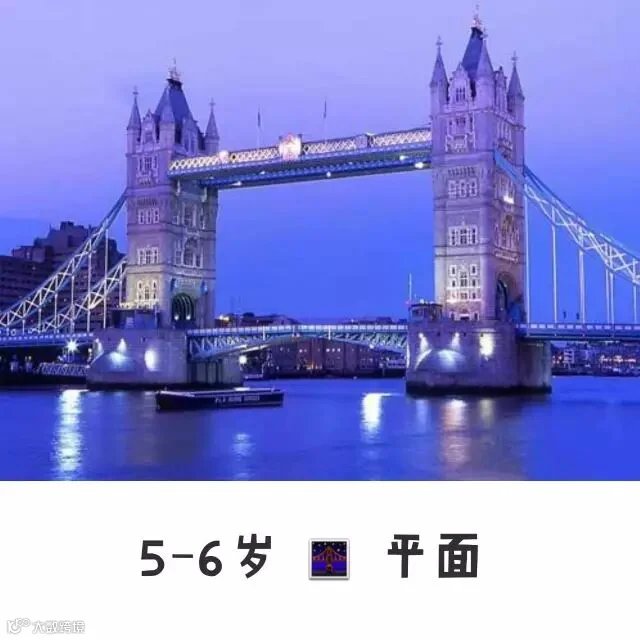 A2 伦敦桥稳当当 (卷线笔/油画棒): 运用线性描绘伦敦桥的桥梁特征,尝试精细刻画表现线条疏密排列变化,结合剪贴方式增添画面趣味性,体验干性与油性硬笔混合使用的效果。