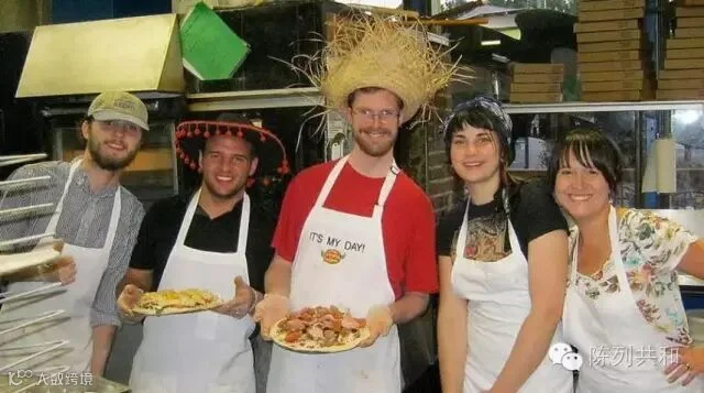 ,就是店主在每周都会在自家的网页上公布出一个名字,比如说,今天是9月5日是“Ross”,他们邀请五位名叫这个名字的幸运顾客,让他们当天下午2点到4点或晚上8点到10点这两个披萨店比较空闲的时间,来到他们的厨房制作自己免费的10寸比萨,当然,来的时候还要记得带上身份证来证明自己确实是叫这个名字,还会要求他们拍一张与自己所做披萨的合影发送到网上。