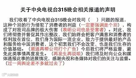 现在的段子手真是敬业,连被315点名后的公关稿都准备好了