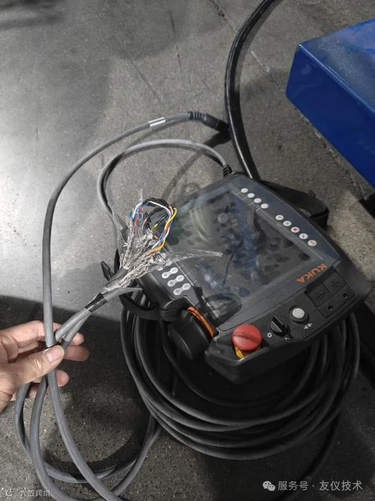 2. 库卡线缆维修:有显示、无法进入系统;线缆破损;示教器屏幕死机,显示不全,黑屏;