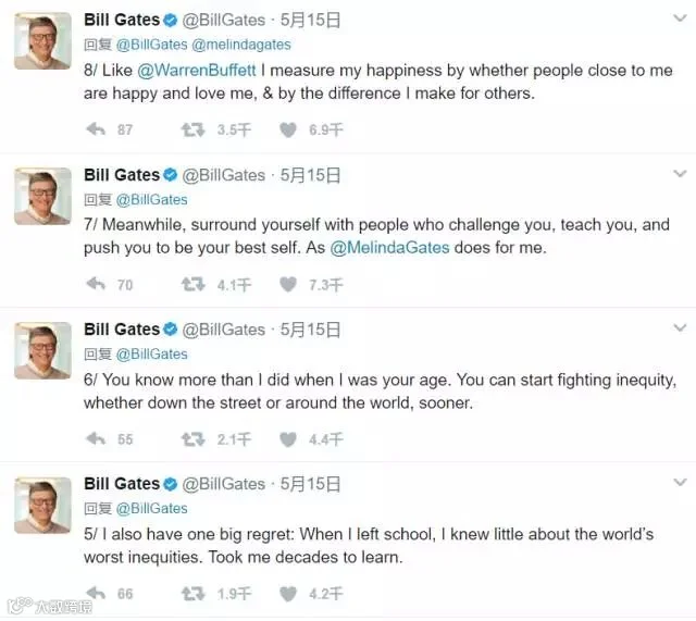 比尔·盖茨近日在社交媒体上连发14帖,希望对即将走出校门的年轻人有所帮助。