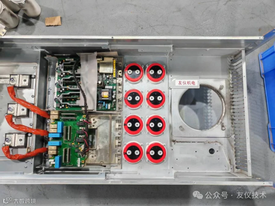 这台伟肯变频器生产中发生故障报警,有过维修记录。经检测主滤波电容已严重劣化,经不起长时间工作;风机驱动板异常(风扇未见积尘,应该是被更换过,新件性能等级不达标)。友仪工程师表示:经多年维修经验总结,此现象属于该机型通病,普通维修公司对元器件性能检测不到位,并且更换元器件不达标,导致反复维修反复坏,增加停机次数和维修成本。我公司维修方案则是采用全新定制元器件,性能比原装高出一个等级标准,一次性彻底解决潜在隐患。