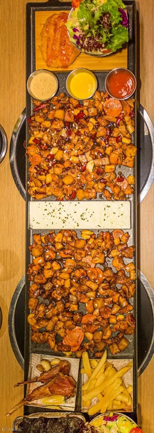 长长长!霸占了整个桌的超长分米鸡,小编爬上屋顶才能拍全它。上了这艘全肉“巨舰”不填满你的胃还想下船?