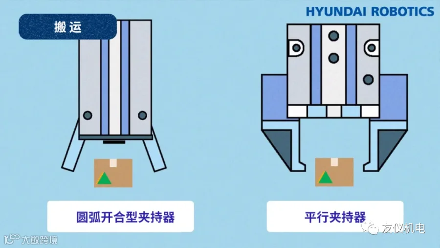 工业机器人可以搭配使用不同的拾取器附在手臂末端进行作业。最常用的一种拾取器是平行夹持器,它通过平行移动夹取物品。还有一种是圆弧形夹持器,手爪沿着中心点开合拾取物品。此外,还有三爪夹持器、真空夹持器、磁性夹持器等等。根据不同的使用目的可以自行搭配不同的拾取器。