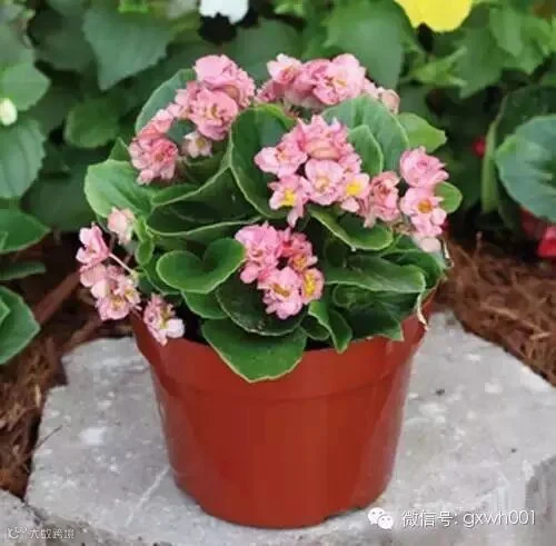 44、四季海棠:多年生草本植物,原产巴西,又称秋海棠、虎耳海棠、瓜子海棠、玻璃海棠。夏季不耐阳光直射和雨淋,应遮阴和防雨,若长期受到雨淋,容易造成花茎与叶片腐败。冬天喜欢充足的阳光,光照不足,则生长柔弱,植株细长,叶色和花色变淡,光线过强,叶片萎缩,出现焦斑,而肥料不足时,植株矮小,叶片发红。盆植的四季秋海棠浇水时需盆土干燥后再浇灌,如长期保持盆土潮湿,容易造成根腐引起立枯病。