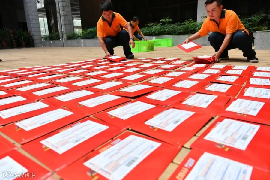 △2017年7月25日,云南邮政工作人员把录取通知书逐一装箱带走。/视觉中国