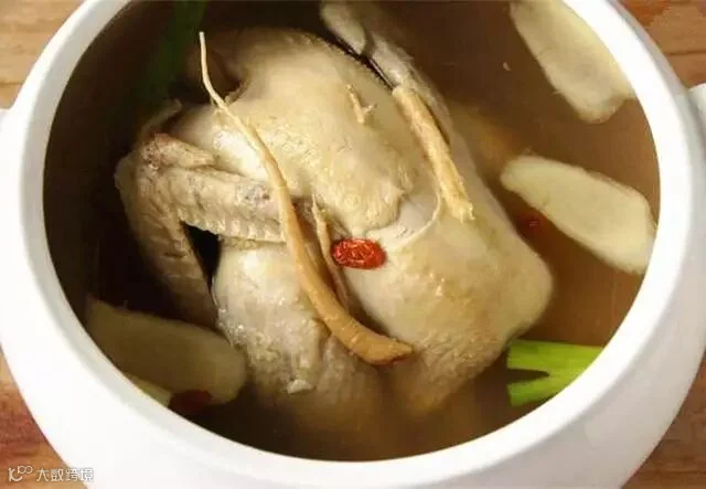 广口的器皿,香味很容易飘出去,炖出来的汤就没有了一口浓香,建议选用窄口高身的瓦罐最好。炖汤的时候,将鸡油放在汤中,这在烹饪中有”以油养汤“的说法。