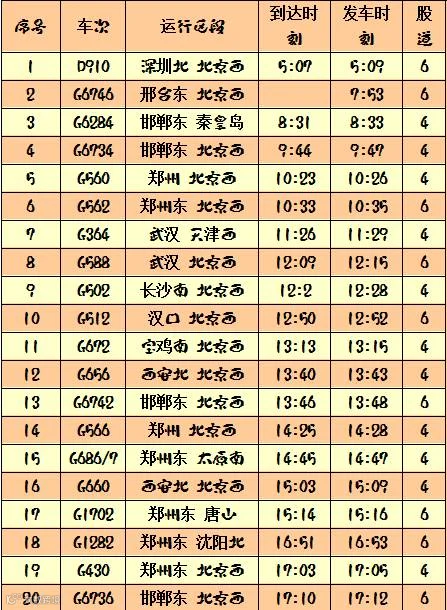 1月10日邢台东站开行“邢台号”G6746(7:53自邢台东站始发,8:20到石家庄,9:51抵达北京西站)。除此之外,还将开行G6755(7:05自石家庄开,7:30到邢台东站),增加G6735(20:46自北京西始发,22:55抵达终点邯郸东站)22:42在邢台东站停靠。