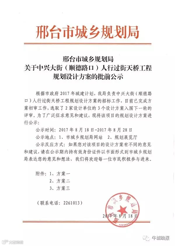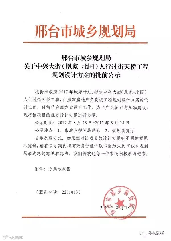 关于中兴大街(凰家-北国)人行过街天桥工程规划设计方案的批前公示