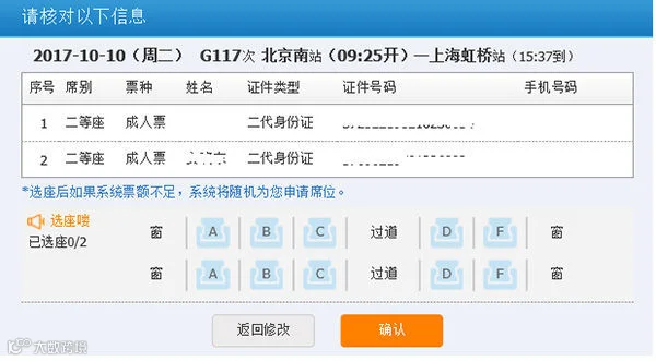 此功能仅提供相邻座位关系选择,如果剩余车票不能满足需求,系统将为您自动分配席位。 如不选择座席关系,直接点击“确定”,系统将自动为您分配席位。