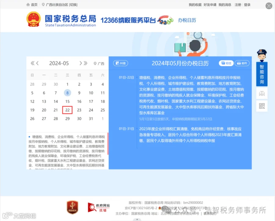 办税日历丨 5月份纳税申报期限提示: