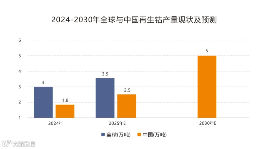 展望未来,再生钴的产量规模与市场份额将进入持续提升的快车道。驱动这一趋势的因素有二:其一,原生钴原料供应缺口持续扩大,倒逼回收物料的经济性不断凸显,叠加大量动力电池密集进入报废周期,为再生钴产业提供了充足且稳定的原料保障;其二,下游核心市场对再生原料的应用比例提出硬性指标。典型如欧盟电池法规,明确划定了回收钴的使用门槛—— 法案生效第8 年,新电池中回收钴占比需达到16%;生效第13 年,该占比需提升至26%。具体来看,2024 年我国再生钴产量约1.8 万吨,预计2025 年将突破2.5 万吨,到2030 年更是有望增长至5 万吨;全球层面,2024 年再生钴产量约3 万吨,2025 年预计将增至3.5 万吨,产业增长潜力巨大。