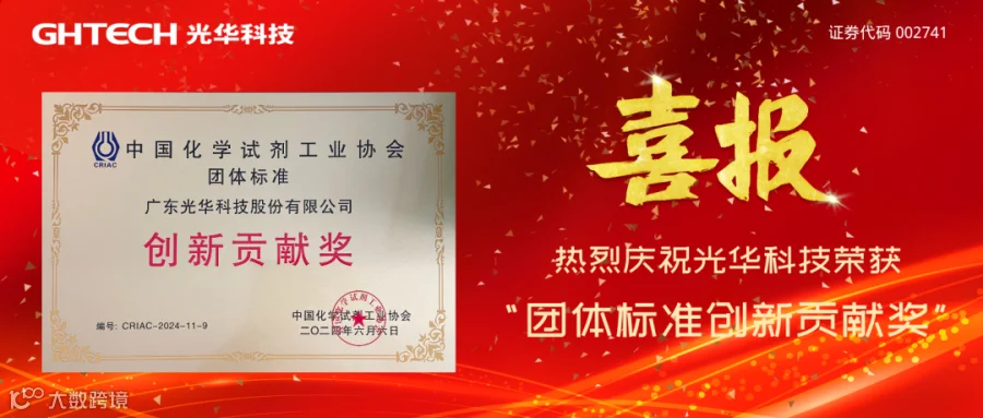 GHTECH光华科技荣获中国化学试剂“团体标准创新贡献奖”!
