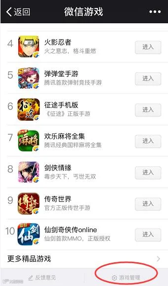 同样是进入微信后,依次点击 【发现】—【游戏】,下拉网页到底,点击页面底部的【游戏管理】图标—然后分别将「接收排行榜赞消息」以及「接收游戏圈消息」关闭即可。