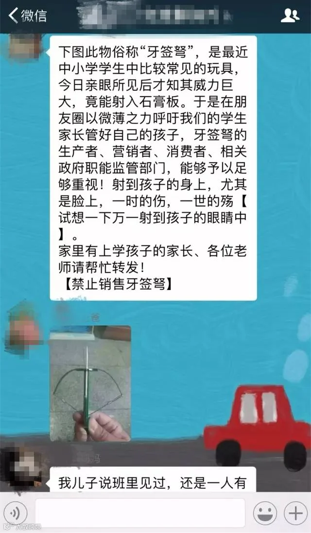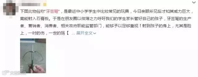 朋友圈、微博上不少家长晒出了这种玩具,多位家长反映,在昆明中小学生中也流行玩这种危险满满的“牙签弩”。