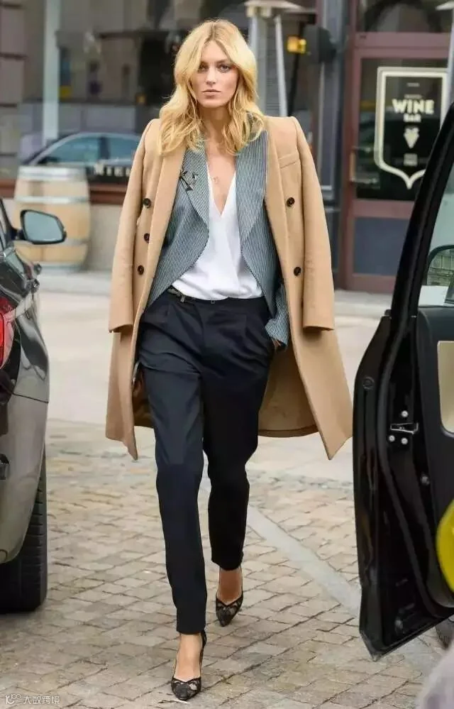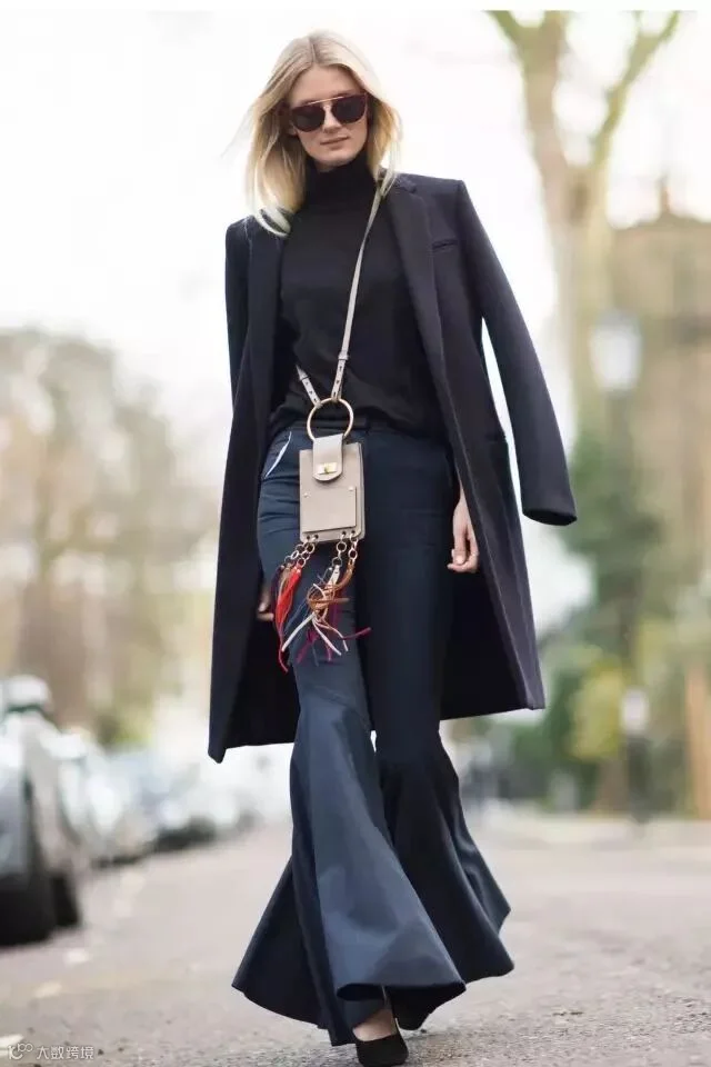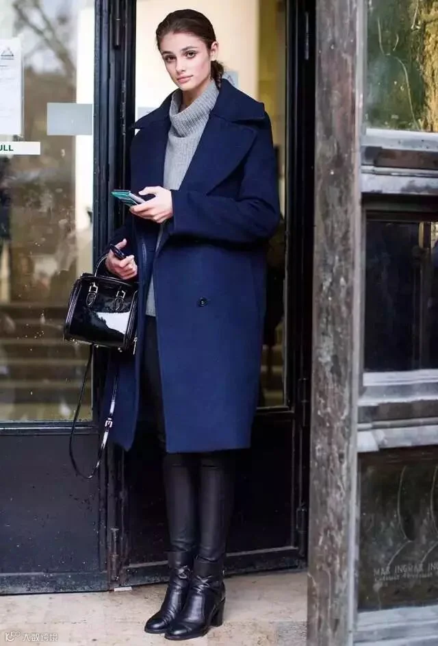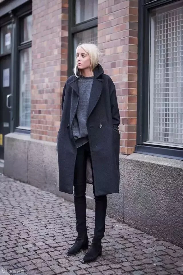 黑色潇洒不羁,最适合配这种材质挺括的深色大衣,帅气逼人气场爆棚。