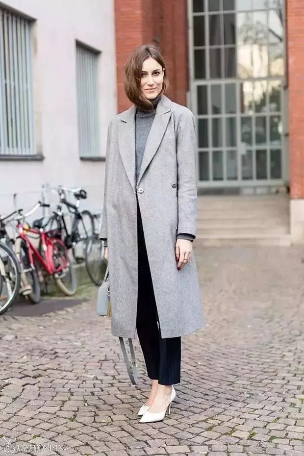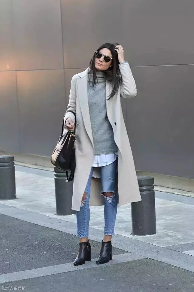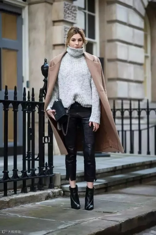 相比极致的黑白二色,灰色高领毛衣则能够胜任更多风格气质,几乎与所有大衣都能完美搭配。