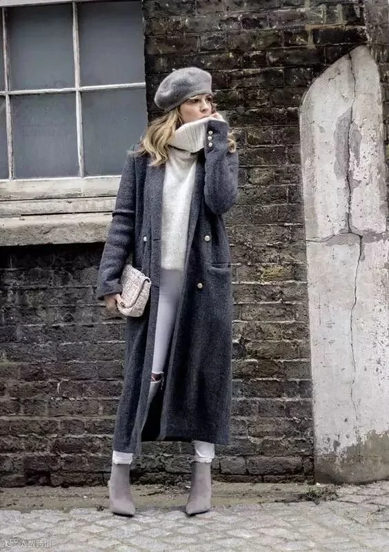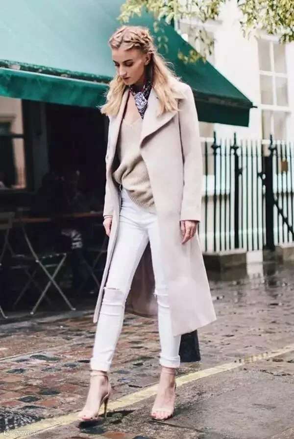 白色毛衣向来给人美好清新的感觉,最适合与浅色系大衣做搭配,软糯又迷人。尤其是高领款,不仅温暖加倍,也能更好地凸显温柔的气质。