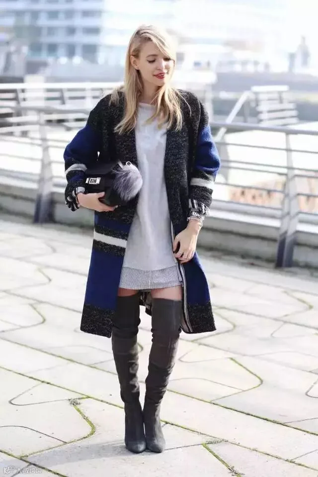 搭配过膝长靴则女人味十足。
