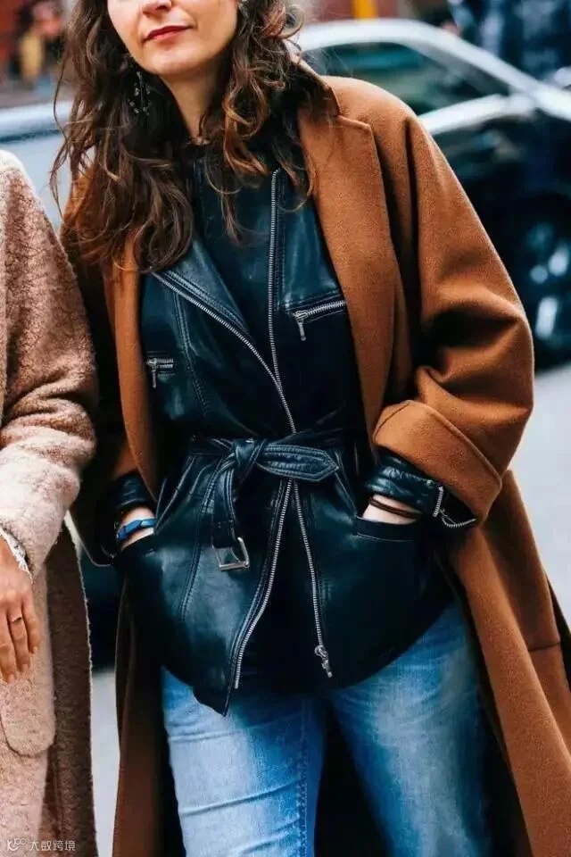 内搭皮夹克,潇洒不羁让人着迷。