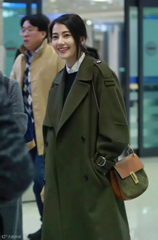叠穿法也是非常适合秋冬的经典穿搭套路。最常见的要属衬衫+毛衣的叠穿组合,作为大衣的内搭,保暖加倍,也增强了造型的层次感。像高圆圆就用针织衫叠穿白衬衫搭配军绿色大衣,露出衬衫领口,尽显文艺知性气质。