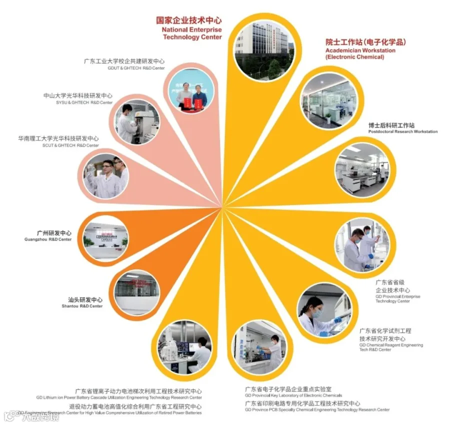 广东光华科技股份有限公司始创于1980年,集产品研发、生产、销售和服务为⼀体,以高性能电子化学品、高品质化学试剂与产线专用化学品、新能源材料和动力电池回收、综合利用为主导,同时提供其他专用化学品的定制开发及技术服务,致力成为国际高端专用化学品创新与整体技术服务方案领跑者,助力国家技术革新,引领产业链高质量发展,持续为全球客户创造价值!