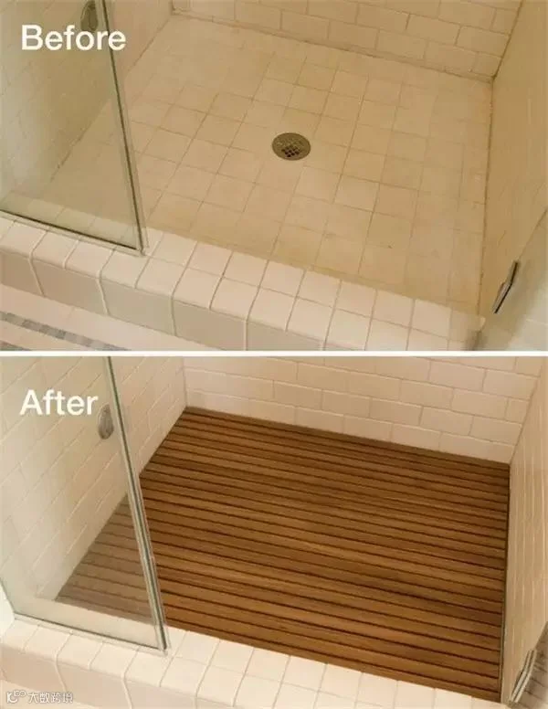 抑或是淋浴空间里加一块木制地板——