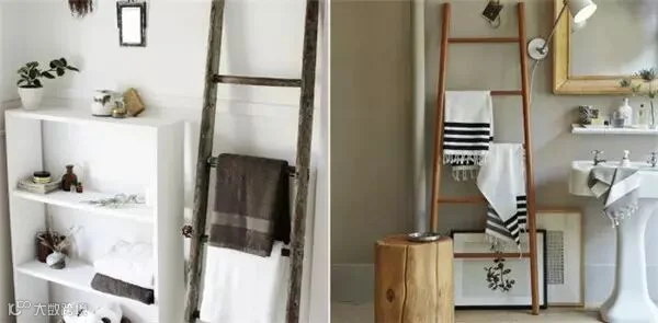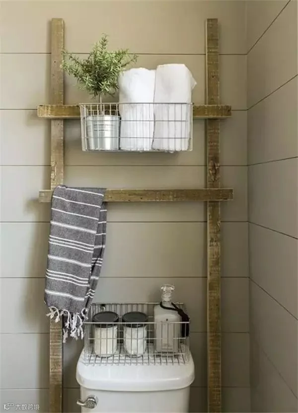 家里废弃的梯子,摆到卫浴间里,绝对是一件收纳神器。