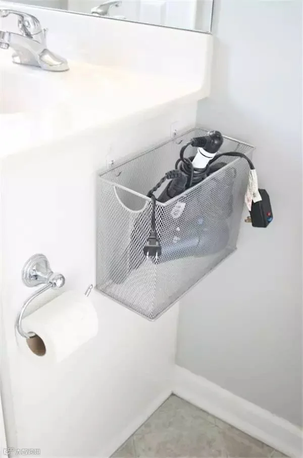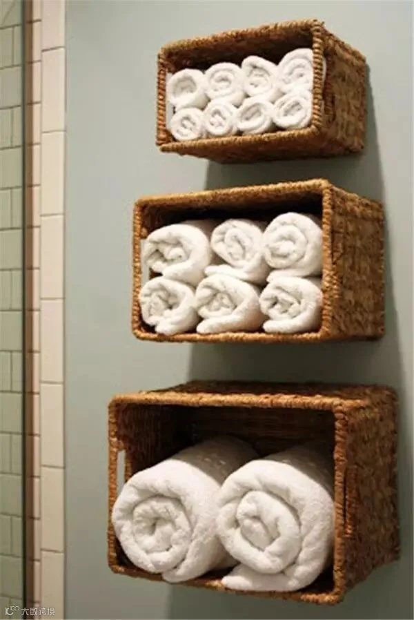 通常情况下,编织篮都是平放在地上,或是桌子上,但是卫浴间空间有限,所以聪明的人都是这样做的——