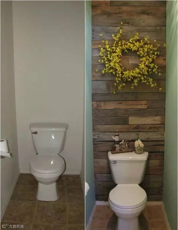 把几个废弃的水果箱洗洗干净晒干,喷涂上油漆,组合到一起,就成了卫浴间里实用的置物架。