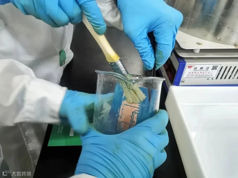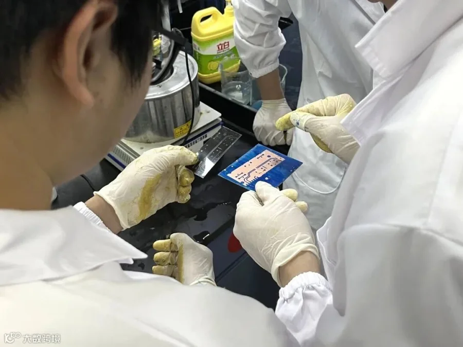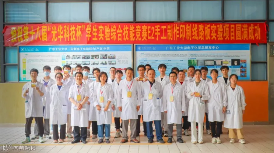 作为IT制造业的前端产业,PCB行业深受重视。广东工业大学作为PCB行业发展培养复合型、创新型人才的基地,于本届比赛首次设立手工制作印刷线路板实验项目。比赛内容主要涉及溶液制备、图形转移操作(线路板涂刷油墨、吹风机烘干油墨、曝光显影等知识) 等关键步骤,参赛选手们在老师的指导下,认真操作各步骤,详细记录实验数据分析处理,得到最终电路板的呈现。