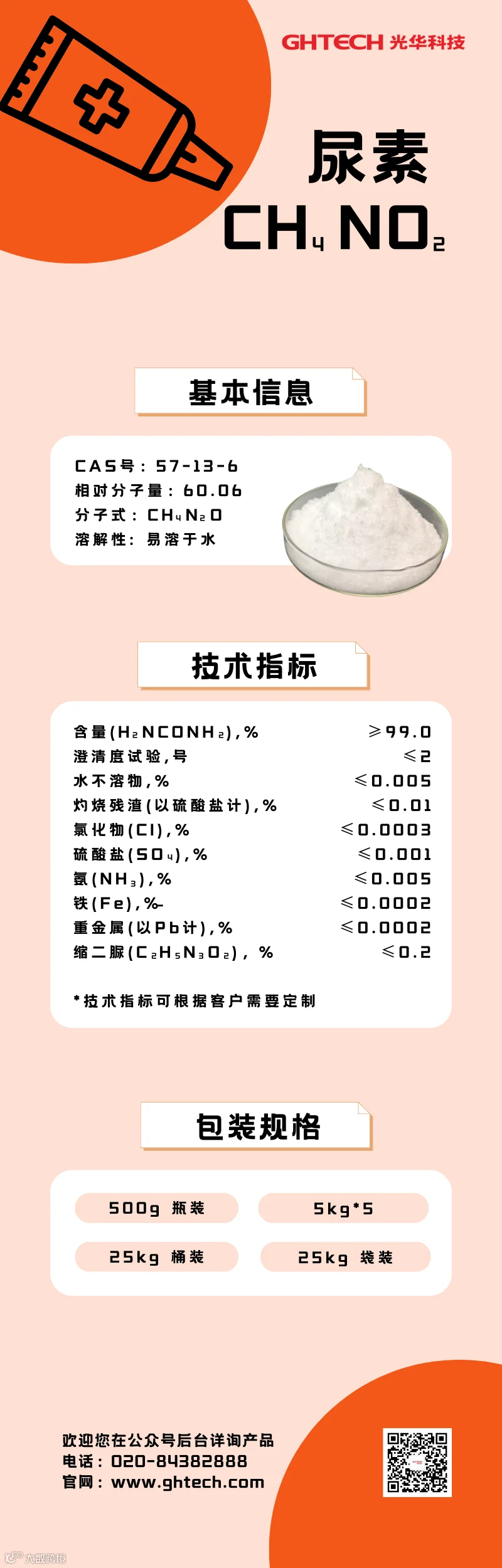 光华科技作为专业专用化学品服务商,可稳定供应优质尿素产品并提供相关服务。若您对我们的产品和定制化服务感兴趣,可留言光华科技公众号后台,或直接拨打光华科技联系热线(86)020-84382888,光华科技愿随时与您分享最新技术和优质产品。