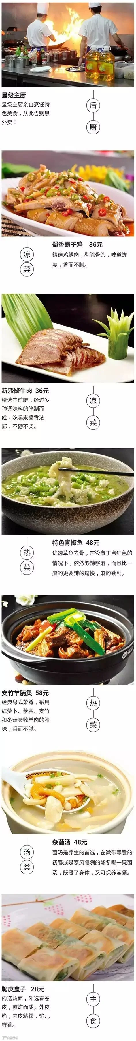 蜀香霸子鸡、泼辣金钱肚、特色青椒鱼、海鲜酸辣汤、脆皮盒子...几十余种美味菜肴及特色汤类主食于每天11:00-13:30、18:00-20:30开始售卖,让你足不出户即享星级主厨招牌美食,无论是充当工作餐还是在家宴会聚餐均适宜噢~