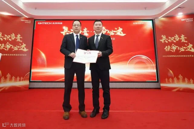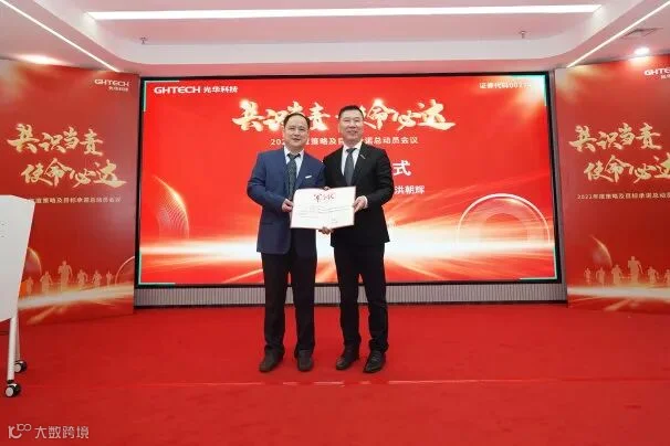 日前,光华科技在广州举行了以“共识当责,使命必达”为主题的2022年度策略及目标承诺总动员会议。董事长陈汉昭、总裁郑靭及各事业部及职能部门负责人一同参加会议,大会指明了2022年度公司经营管理战略,统一了目标方向,落实责任担当,强化团队赋能,并就2022年的目标进行了郑重宣誓。