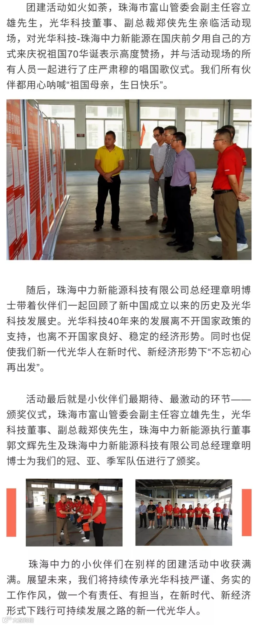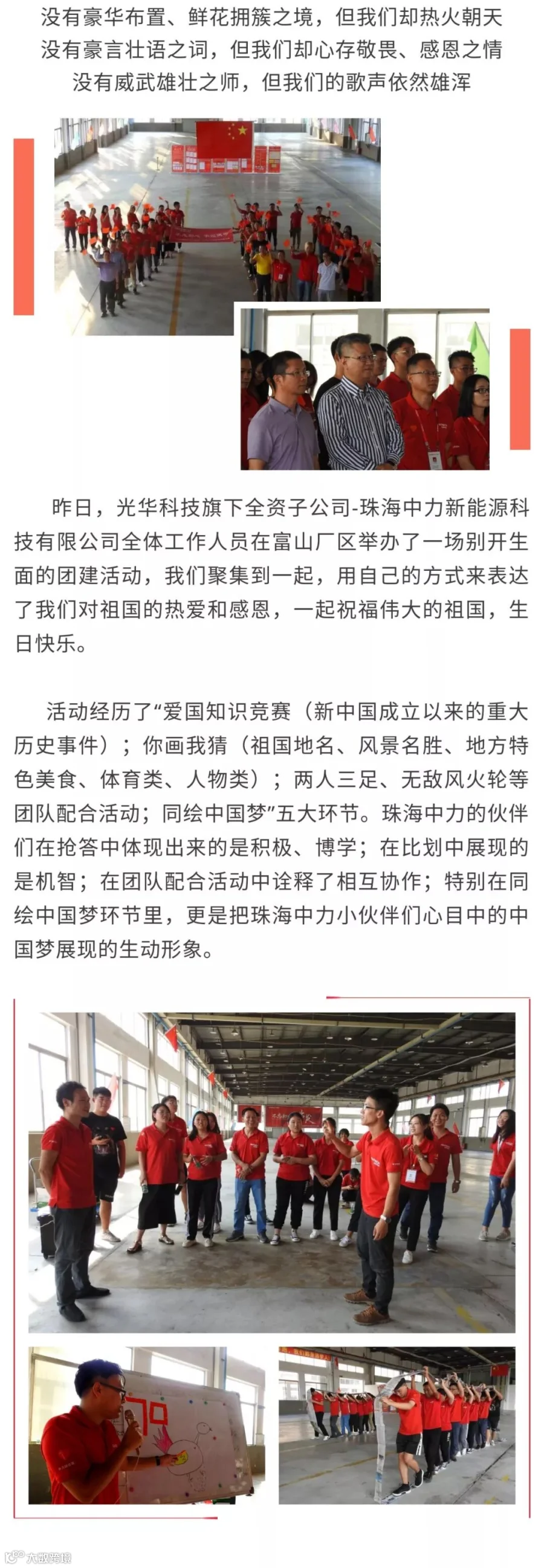 导读:“祝伟大的祖国,生日快乐”——光华科技-珠海中力新能源举行别样团建活动