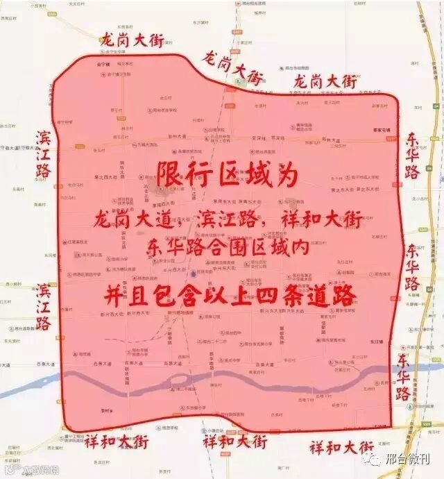 限行区域:滨江路、祥和大街、龙岗大街、东华路围合区域(含上述街道);
