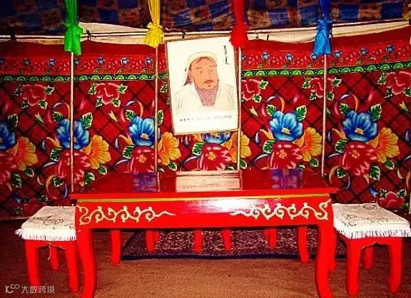 无论是墙上挂着的成吉思汗画像、草原水袋、马琴饰品,还是朱红色木质桌椅,无一不透露出草原上特有的那种粗犷、豪迈气息。