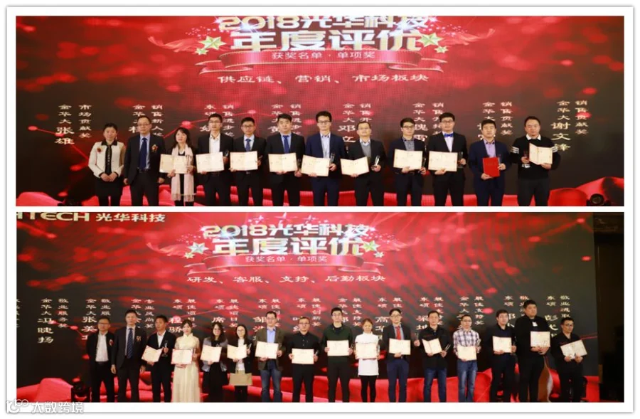回顾2018,研发、营销、市场、供应链、后勤支持等各个板块涌现出许多表现优异的伙伴,他们分别为公司的科技创新,市场开拓及支持等各方面做出了杰出的贡献,是光华科技全体同仁最优秀的代表!