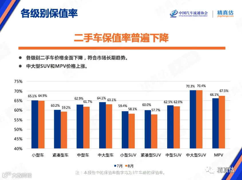 ,报告显示二手车保值率普遍下降。