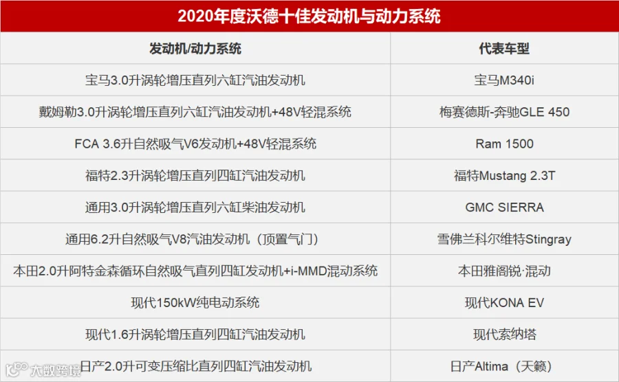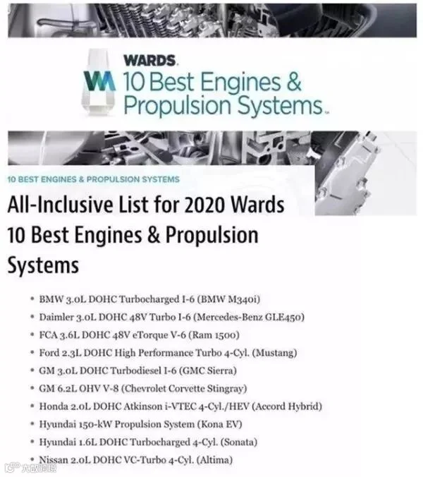 沃德十佳发动机又名全球十佳发动机,是美国权威杂志《Ward's Auto World》杂志社于1995年创立的榜单,也被誉为是行业内最具影响力的榜单之一。经过2个月的评选工作,2020年度榜单正式公布。今年开始,“沃德十佳发动机”变更为“沃德十佳发动机及动力系统”,因为当今车辆装配的动力系统不再是单一的发动机,而是加入了更多的电气化设备实现辅助驱动,同时纯电动系统、氢燃料电池系统等也成为当今汽车行业发现的一大趋势。