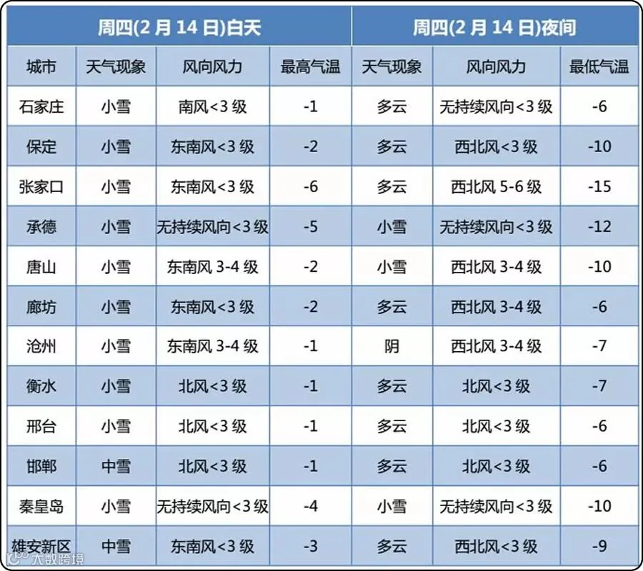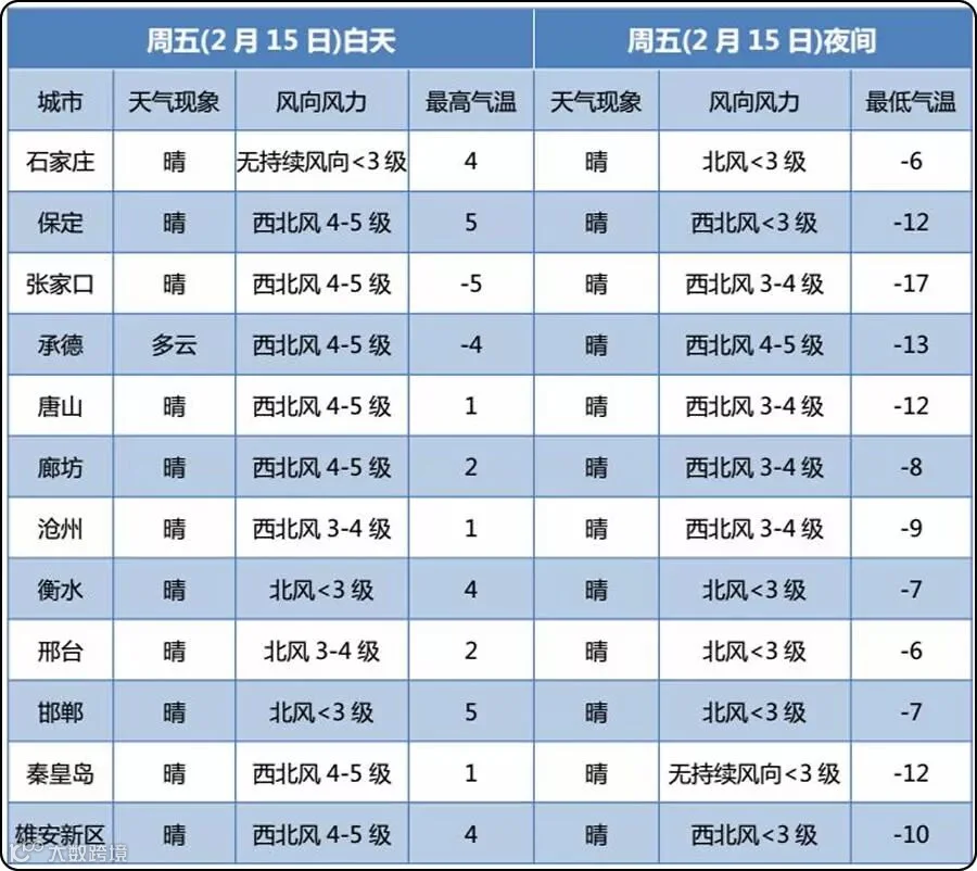 受冷空气影响,14日后半夜到15日白天,保定、廊坊及以北地区先后有西北风4到6级,阵风7级。15-16日早晨,全省各地最低气温有所下降,北部地区下降5-7℃,局地8-10℃,其他地区下降3-5℃。