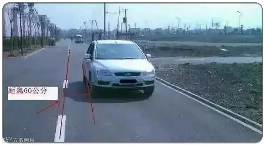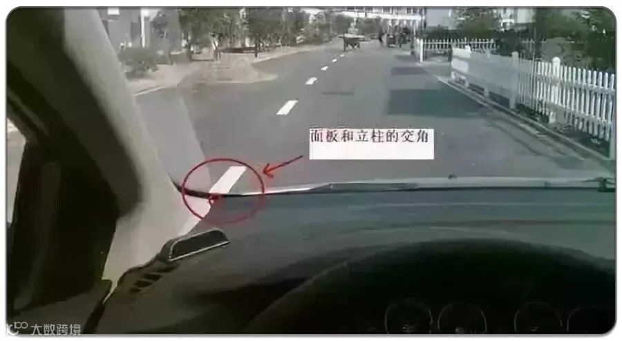 当面板与A柱的交角和中线重合的时候,车子与中线的距离恰好在60公分左右。
