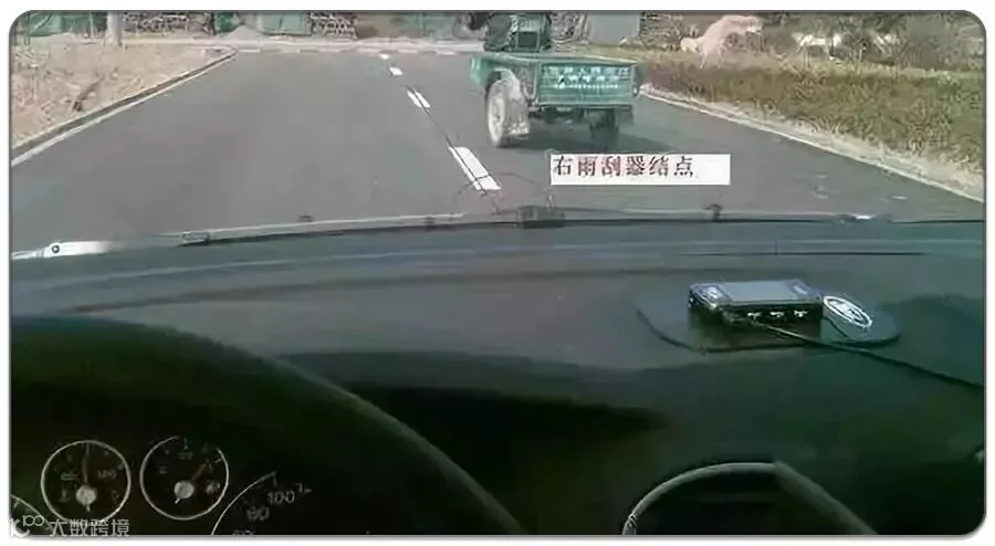 我们都知道,左侧的雨刷器有一个凸起的节点,而这个结点与地面物体重合的时候,就说明车子的左轮会从该处压过。就如图中所示,车子的左轮会从中心线压过。