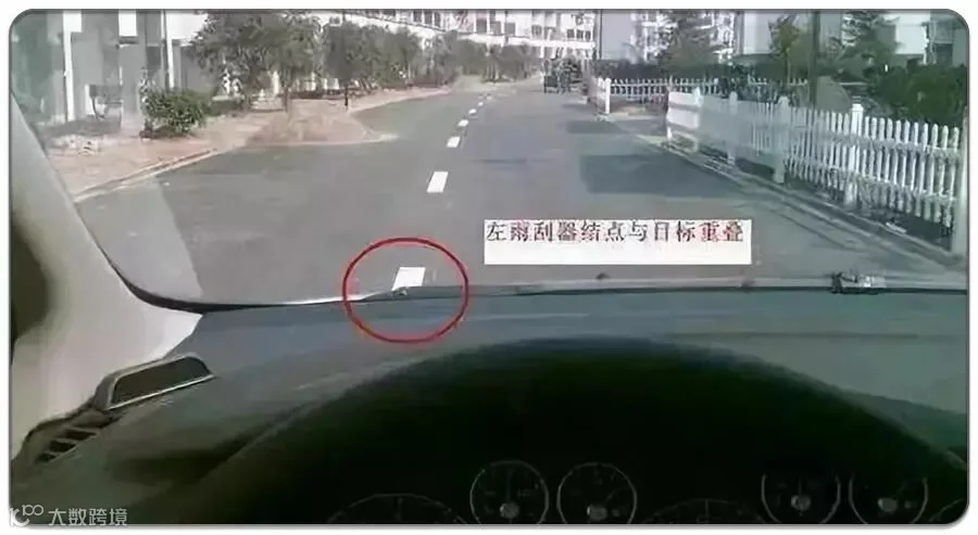 当雨刷器的右侧结点与路边重合的瞬间,向左打方向盘,随后车身停直,就可以取得距离马路边10公分的停车效果了。