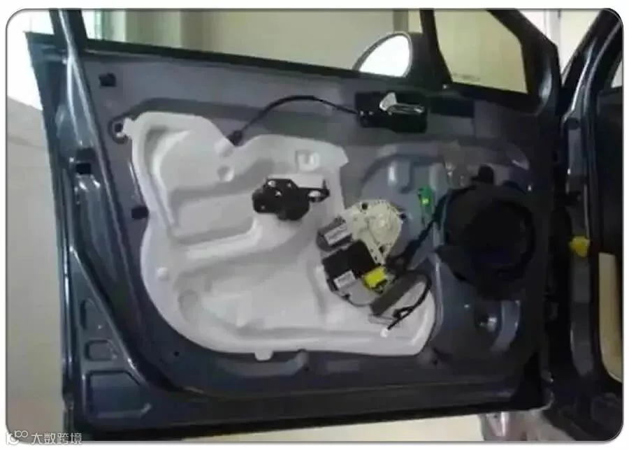 汽车车门是个结构比较复杂的部件,含有众多零件:门锁、玻璃升降器、喇叭和防撞梁,同时还有防水层、隔音层等等。